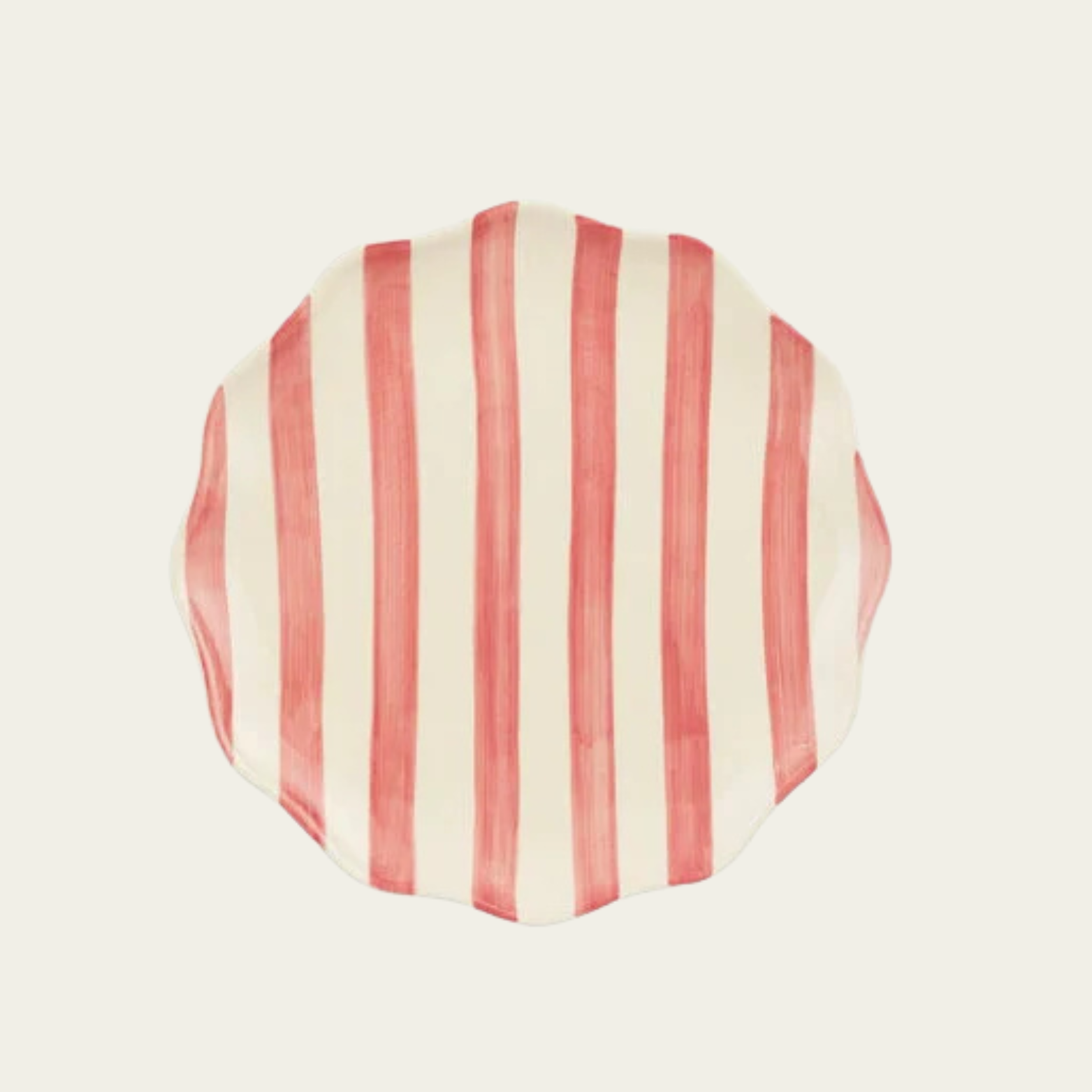 Het Zomers Ontbijtbord Gestreept brengt elke ochtend tot leven. De warme roze strepen en de speelse, golvende vorm zorgen voor instant vrolijkheid aan tafel. Of je nu een croissantje, een stapel pannenkoeken of een snelle toast serveert — dit bord maakt er iets bijzonders van.