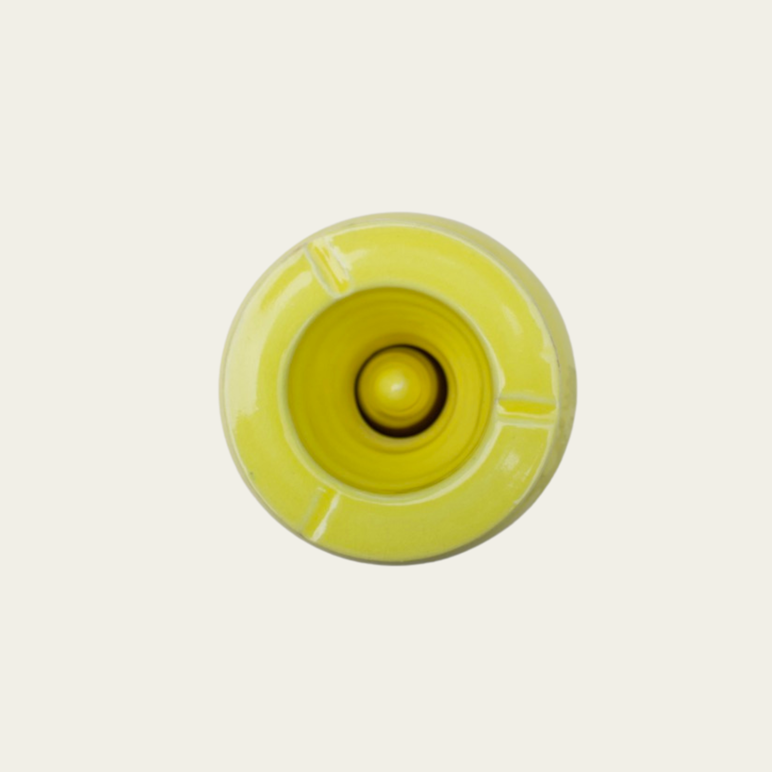 Gele Asbak is een handgemaakte asbak van keramiek, geglazuurd in een warme, zonnige gele kleur die direct aandacht trekt. Deze asbak is niet alleen een gebruiksvoorwerp, maar ook een stijlvol accessoire dat jouw moment verrijkt en je interieur een frisse, levendige uitstraling geeft.
