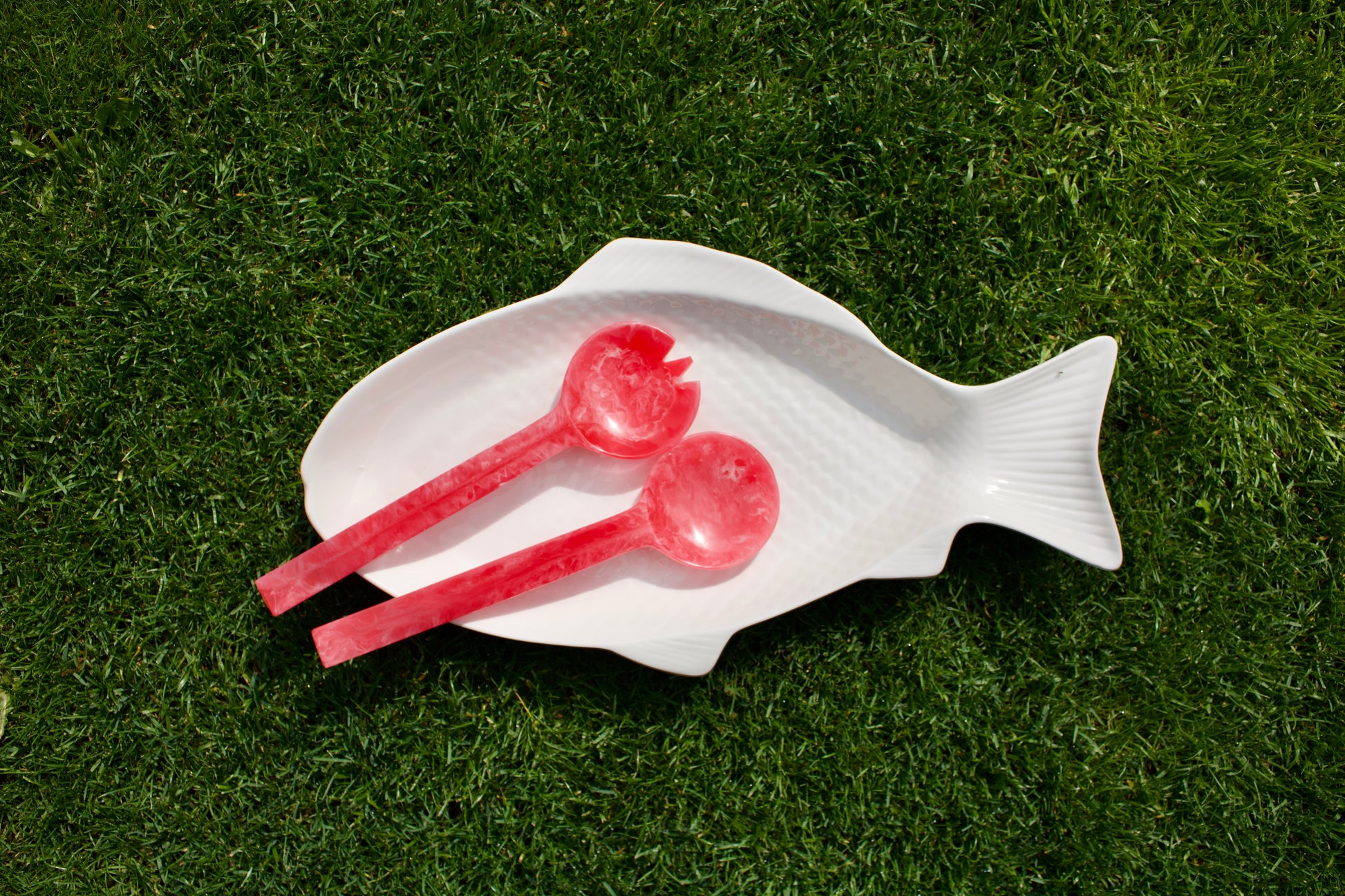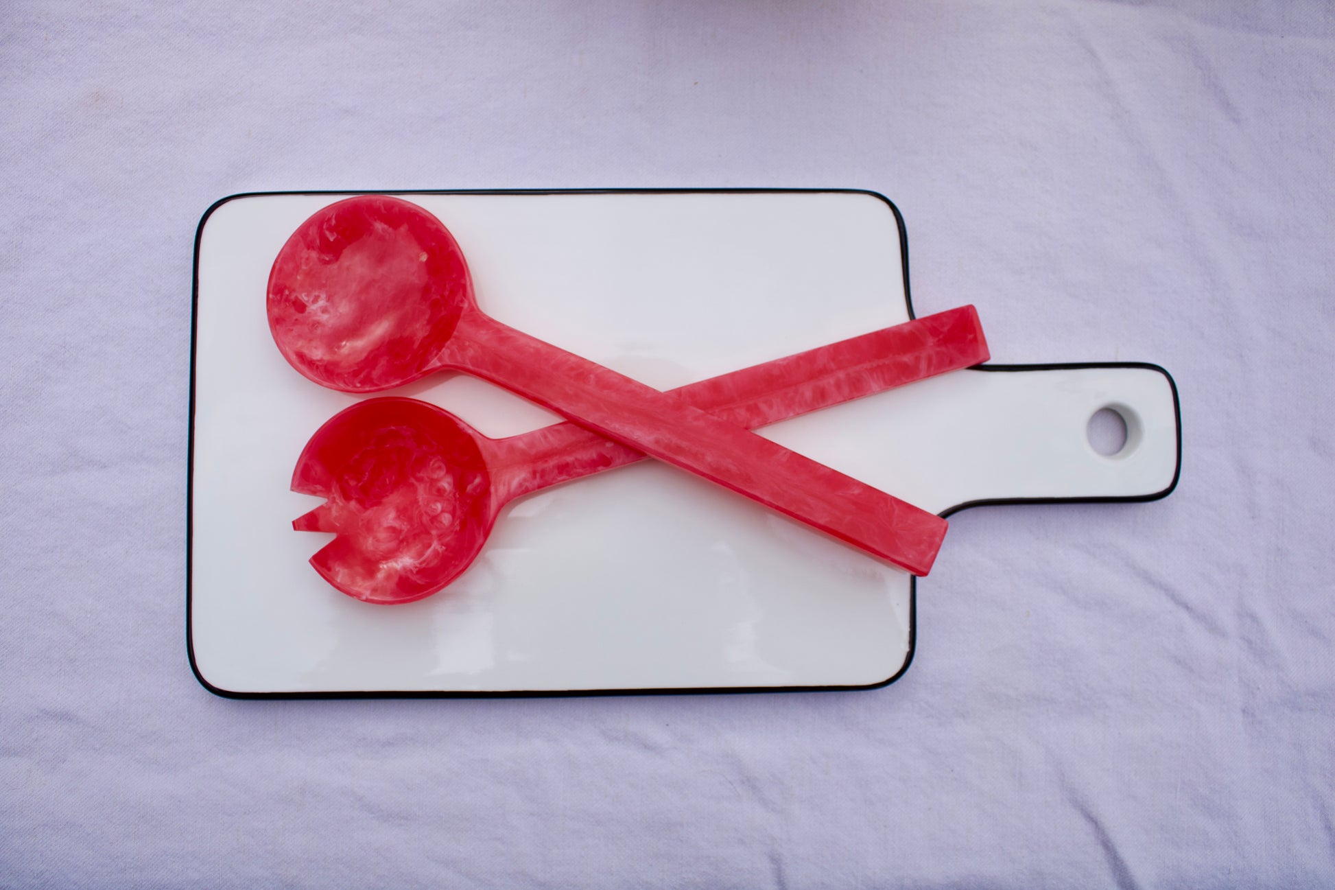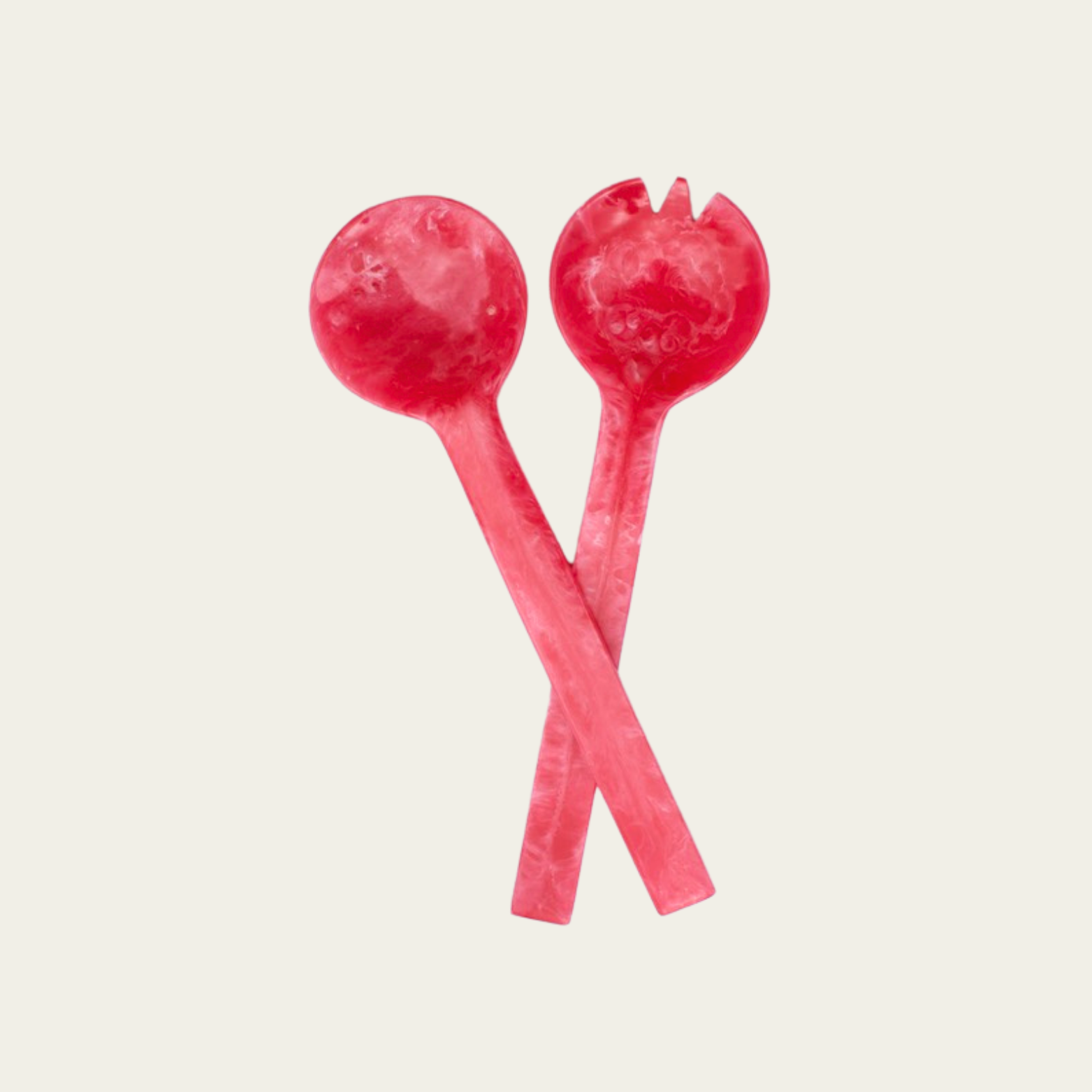 De Roze gemarmerde saladescheppen zijn allesbehalve doorsnee. Met hun felroze marmerlook en speelse vorm zijn ze gemaakt om je salades met flair te serveren. Lichtgewicht maar stevig, en opvallend genoeg om zelfs een simpele groene salade te laten shinen.