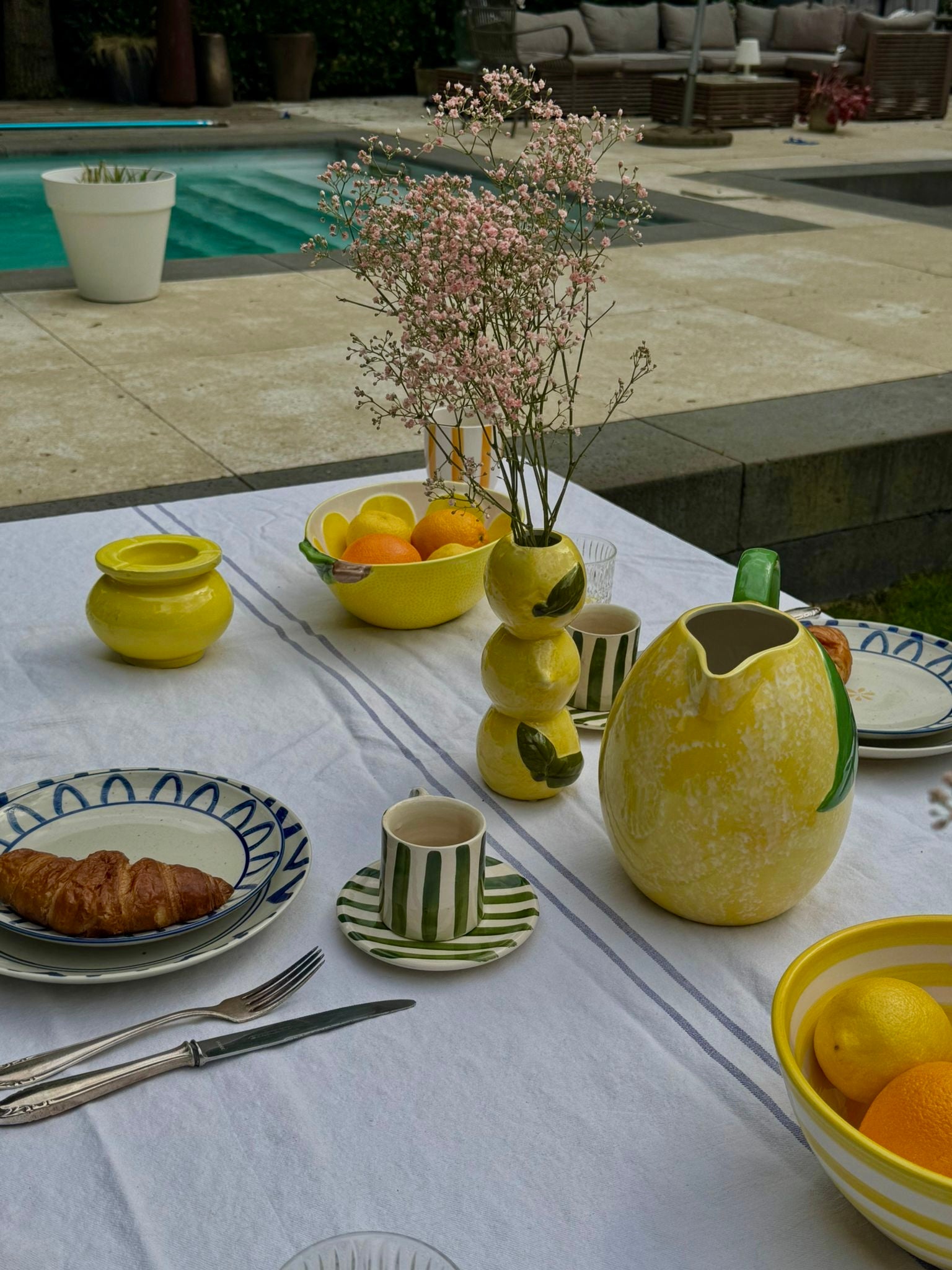 Combineer met citroengele accenten of gestreept textiel voor een tafelsetting die zomers en vrolijk aanvoelt — of geef cadeau aan een citrusliefhebber.