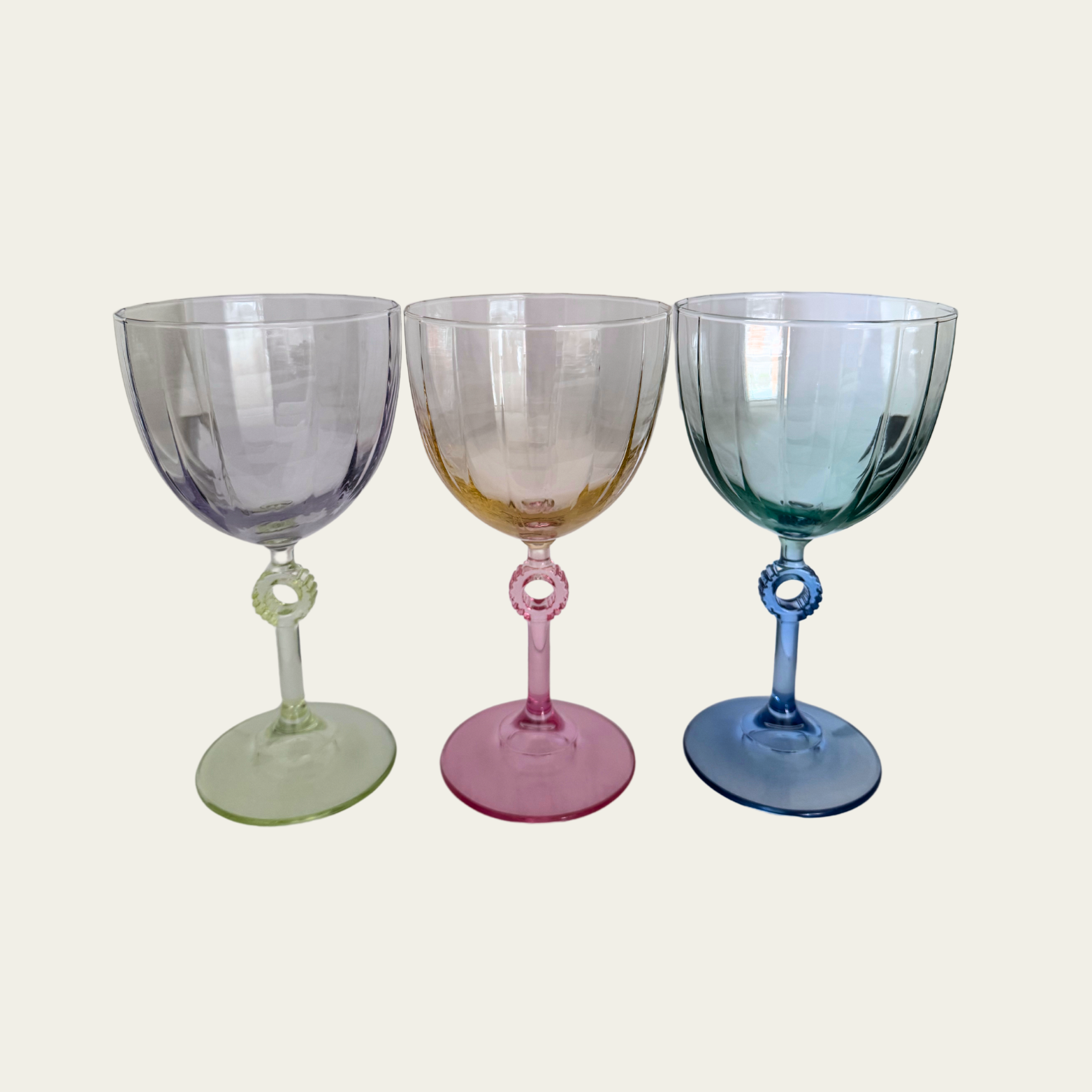 Zet je tafel in bloei met de Wijnglazenset — een vrolijke mix van zes kleurrijke glazen die ieder diner een feestelijk randje geven. Elk glas is uniek, maar perfect in balans: twee paarse, twee roze en twee blauwe tinten maken deze set een echte blikvanger. De sierlijke ring aan de voet geeft een speelse twist, terwijl het dunne glas zorgt voor een elegante drinkervaring.